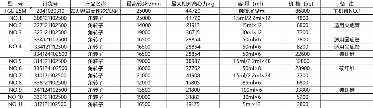 TGL-25M 台式大容量高速冷冻离心机 最高转速r/min:25000 最大相对离心力×g:44720 触摸屏显示 主机带NO.1 卢湘仪