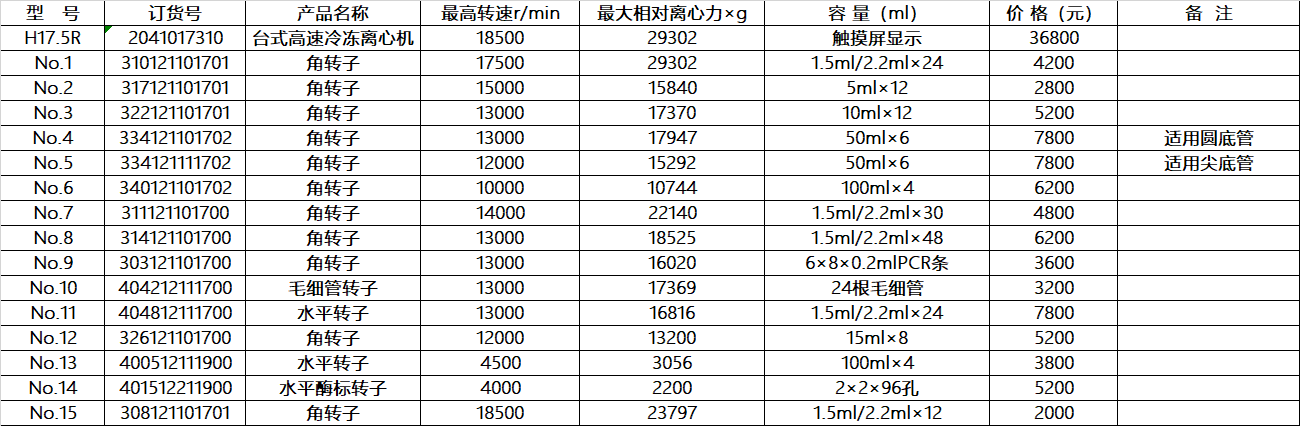 H17.5R 台式高速冷冻离心机 最高转速r/min:18500 最大相对离心力×g:29302 触摸屏显示 卢湘仪