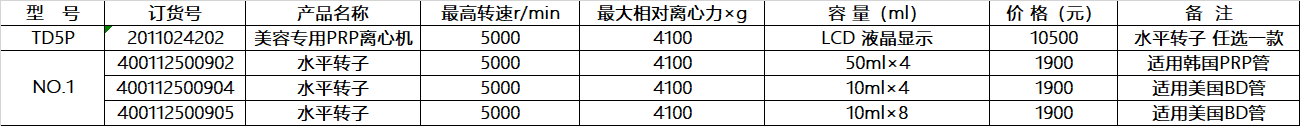 TD5P 美容专用PRP离心机 最高转速r/min:5000 最大相对离心力×g:4100 LCD 液晶显示 水平转子 任选一款 卢湘仪