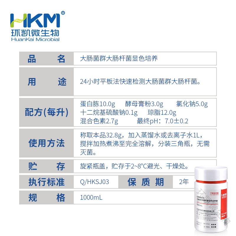 CRM003 大肠菌群和大肠杆菌显色培养基 1000ml 环凯