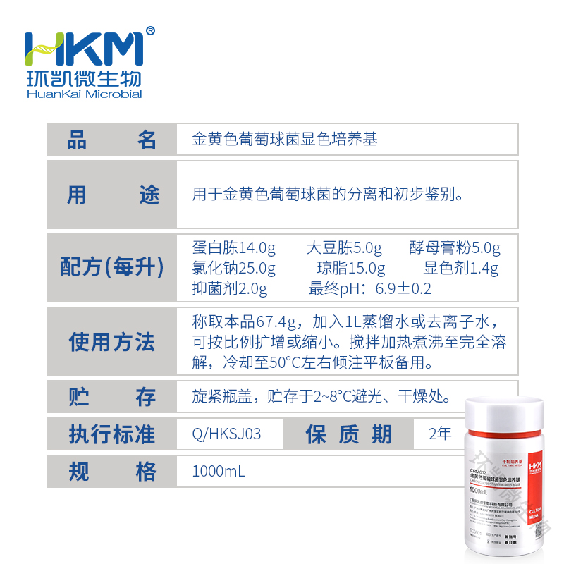 CRM012 金黄色葡萄球菌显色培养基 1000ml 环凯