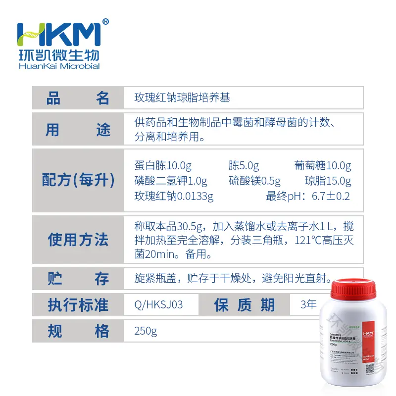 021011P 玫瑰红钠琼脂培养基 10袋(300mL配量/袋) 环凯
