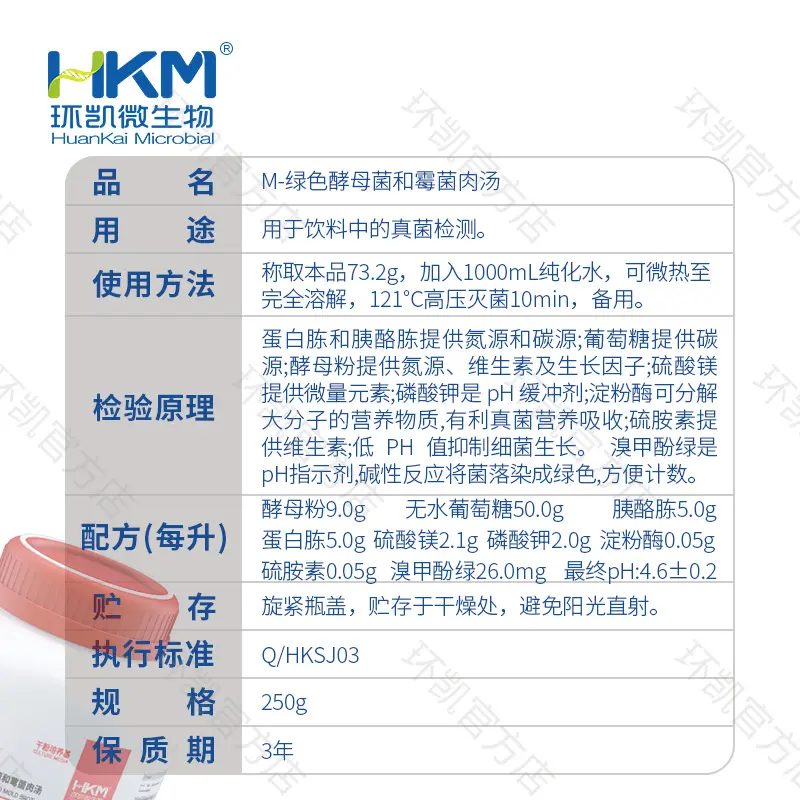 021042 M-Green Yeast and Mold Broth (M-绿色酵母菌和霉菌肉汤) 250克 环凯