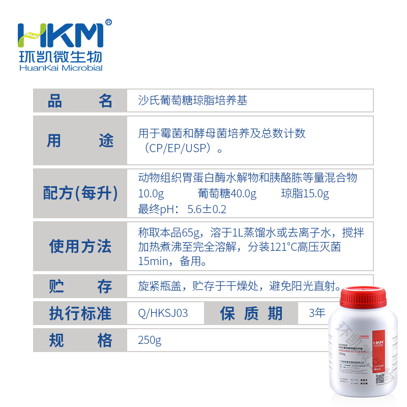 021099 沙氏葡萄糖琼脂培养基(20版药典)250g 环凯