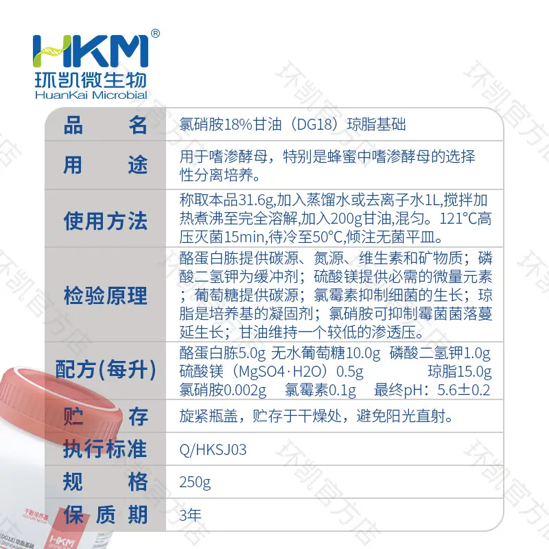021115 氯硝胺18%甘油(DG18)琼脂 BR 250g 环凯