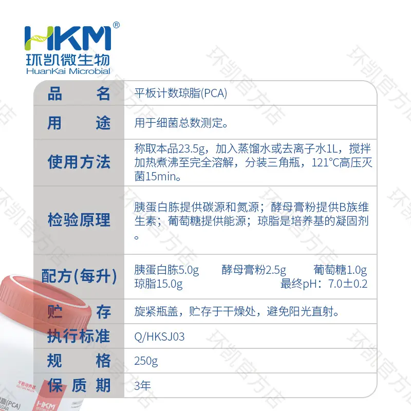 022070 平板计数琼脂培养基(含糖琼脂PCA) BR 250g 环凯