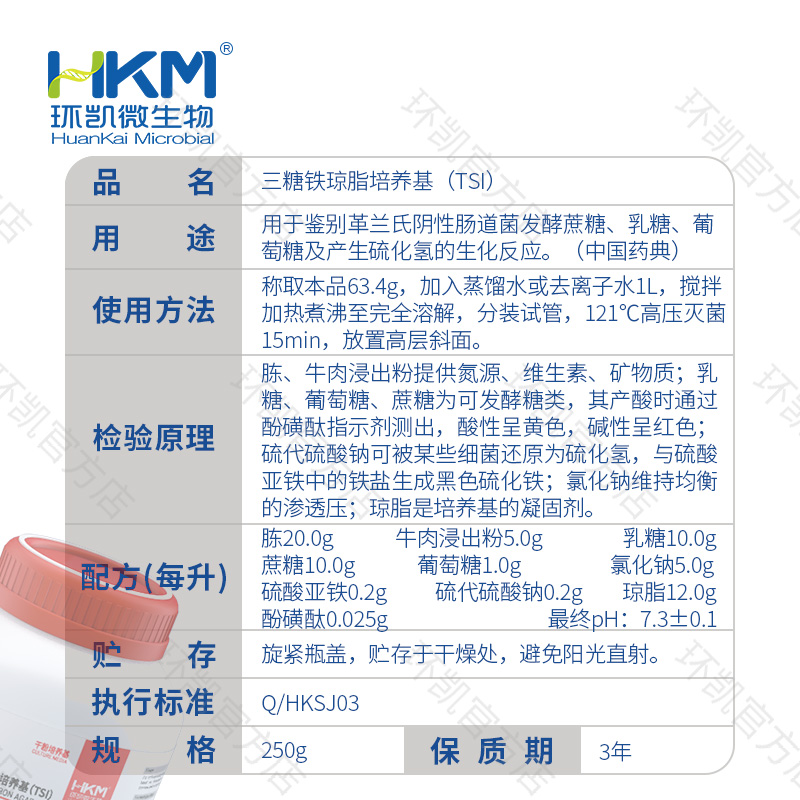 022080 三糖铁琼脂培养基(TSI) BR 250g 环凯