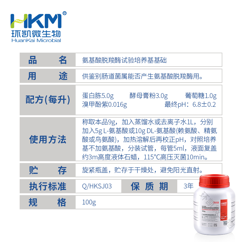 022090 氨基酸脱羧酶试验基础培养基 BR 100g 环凯