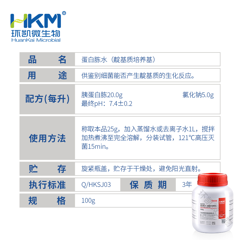 022110 蛋白胨水培养基(靛基质培养基) BR 100g 环凯