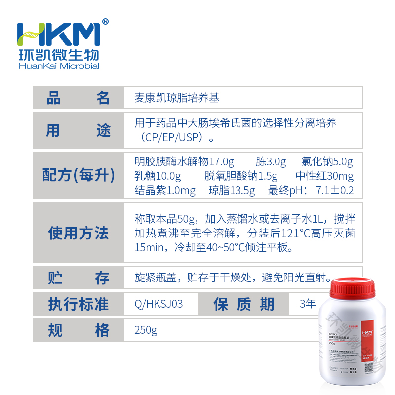 022143 麦康凯琼脂培养基(20版药典)250g 环凯