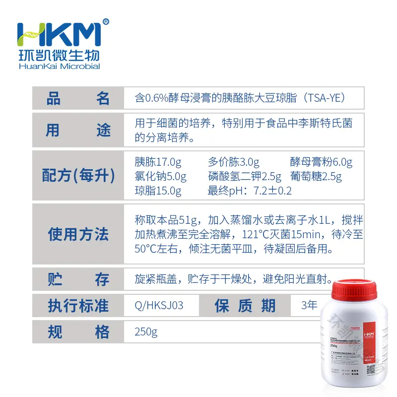026020 胰酪胨大豆酵母浸膏琼脂(TSA-YE) BR 250g 环凯