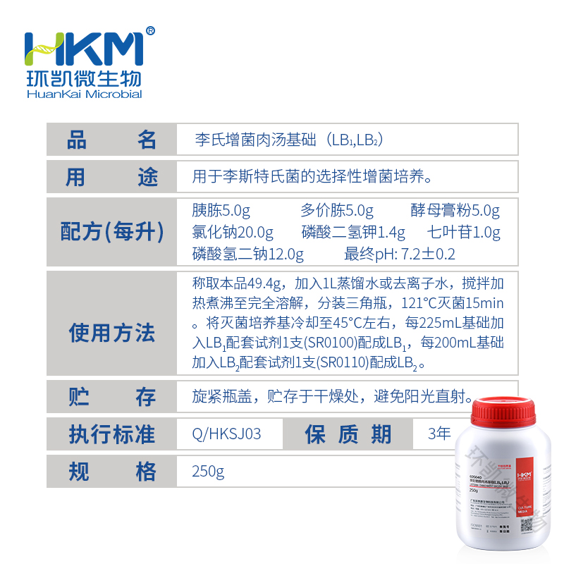 026040 李氏菌增菌汤(LB1,LB2)基础 BR 250g 环凯