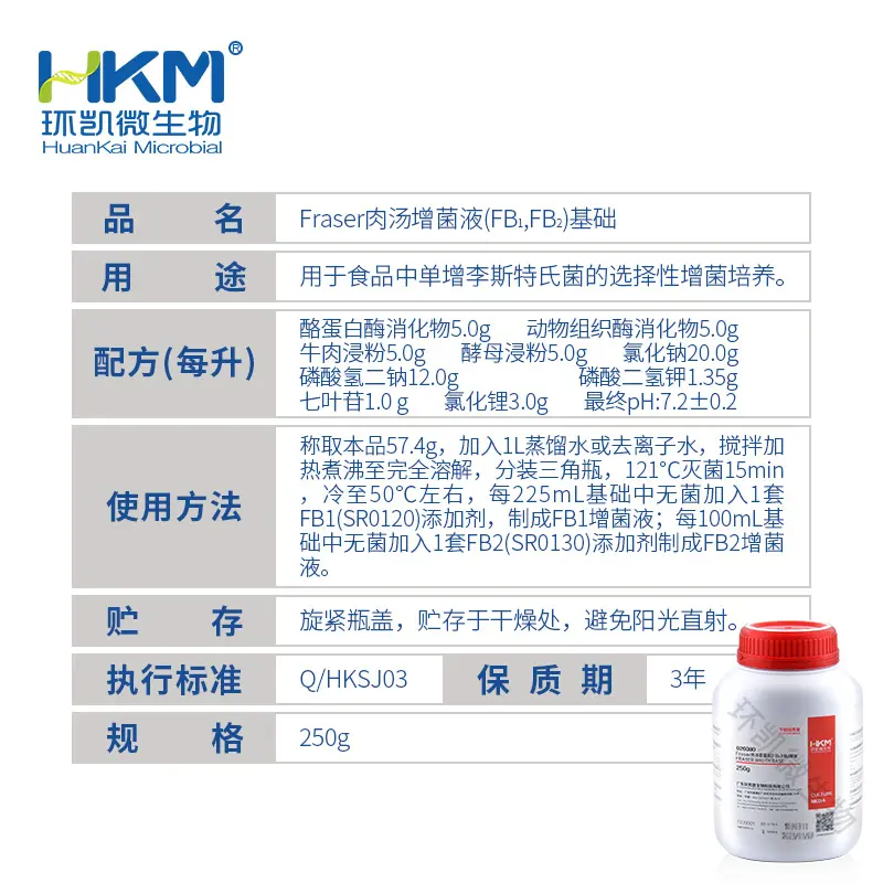 026080 Fraser肉汤增菌液(FB1,FB2)基础 BR250g 环凯