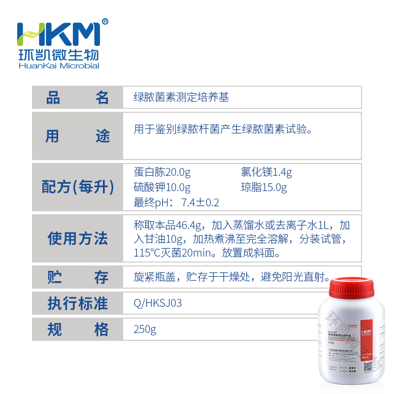 027050 绿脓菌素测定用琼脂培养基 BR 250g 环凯