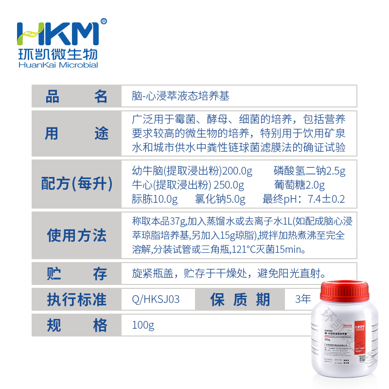 028360 脑-心浸萃液态培养基(BHI) BR 100g 环凯