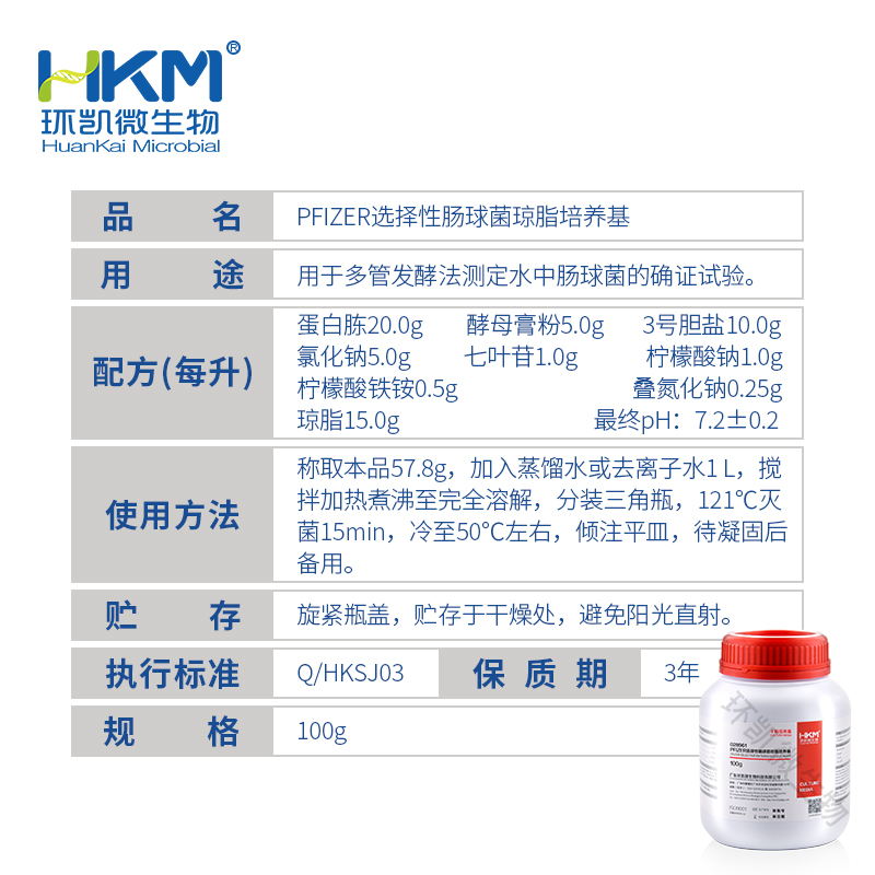 028961 Pfizer选择性肠球菌琼脂培养基 BR 100g 环凯