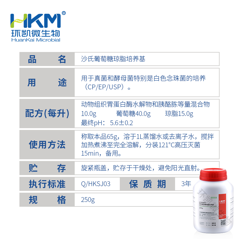 021099P1 沙氏葡萄糖琼脂培养基(颗粒型)(20版药典)250g 环凯