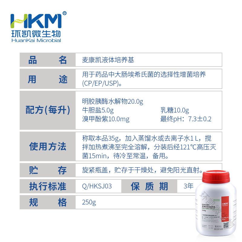 022039P1 麦康凯液体培养基(20版药典)(颗粒型) 250g 环凯