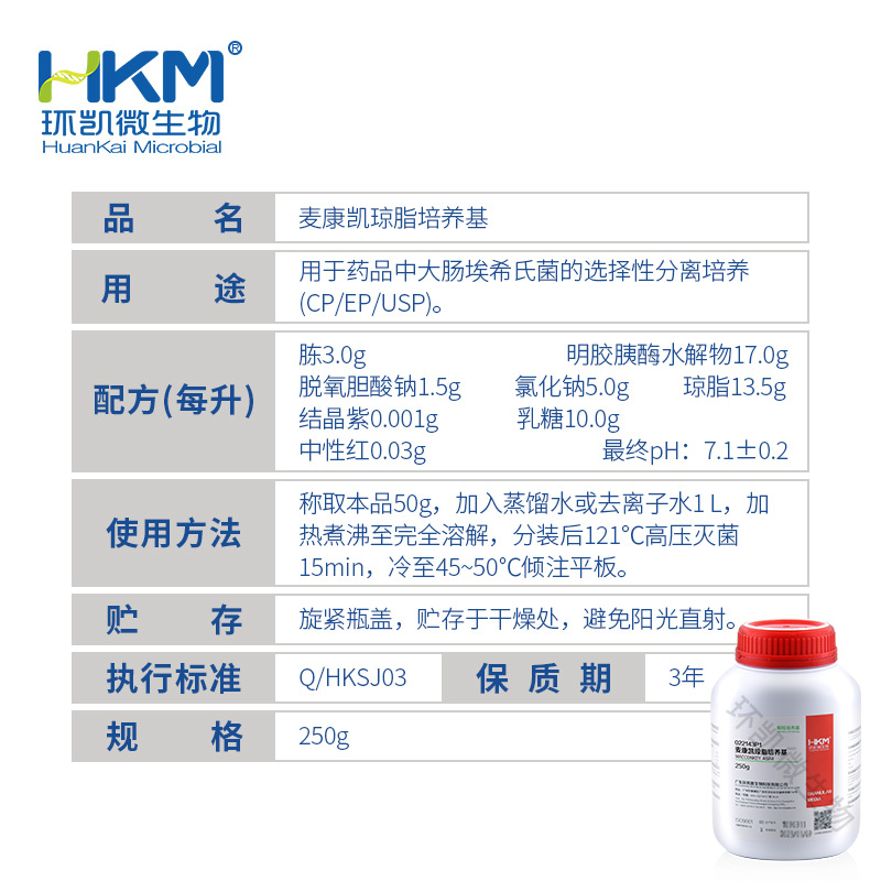 022143P1 麦康凯琼脂培养基(颗粒型)(20版药典)250g 环凯