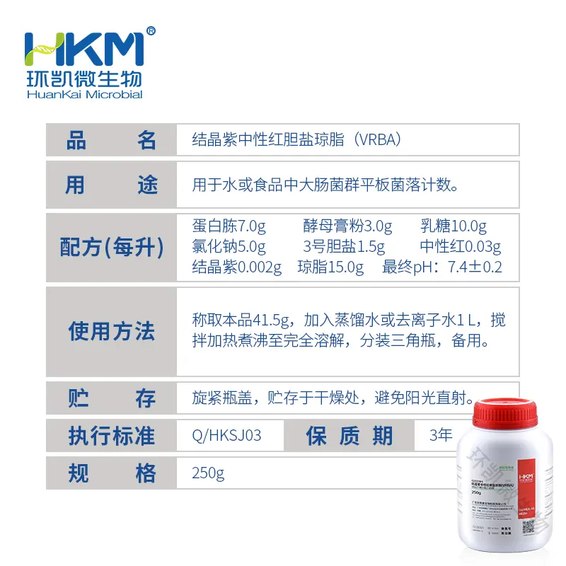 022221P1 结晶紫中性红胆盐琼脂(VRBA)(颗粒型)250g 环凯