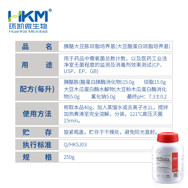 028074P1 胰酪大豆胨琼脂(大豆酪蛋白琼脂培养基)(TSA)(颗粒型)(20版药典)250g 环凯