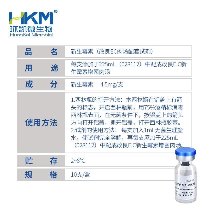 SR0030 新生霉素(改良E.C.新生霉素增菌肉汤配套试剂)4.5mg*10支 环凯