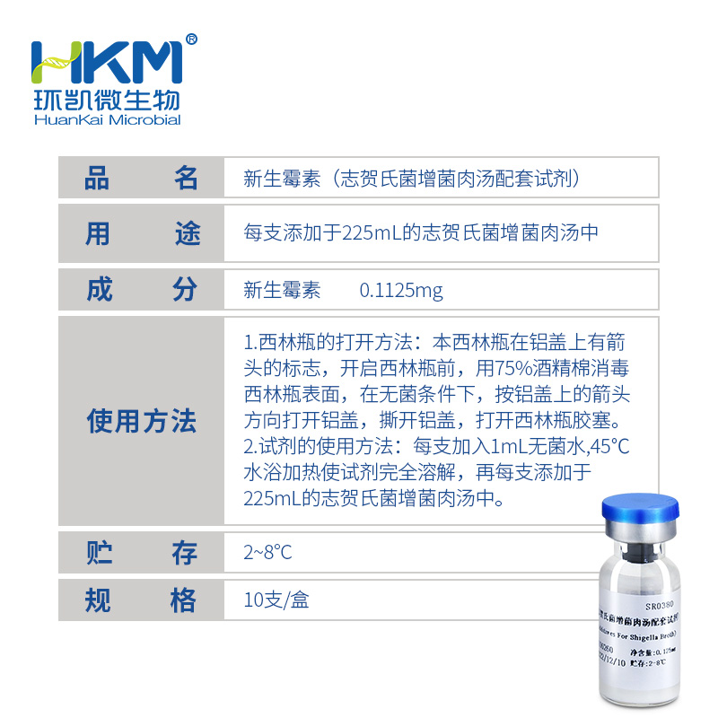 SR0380 志贺氏菌增菌肉汤配套试剂(新生霉素125ug/支) 10支 环凯