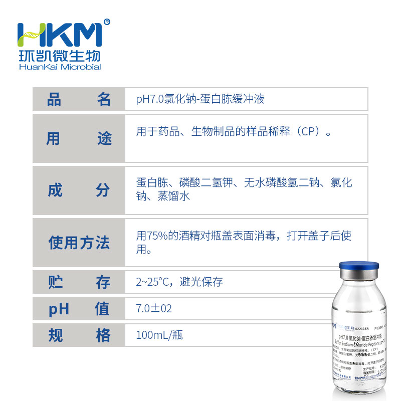022116A PH7.0氯化钠-蛋白胨缓冲液 100ml/瓶(40瓶/箱) 环凯