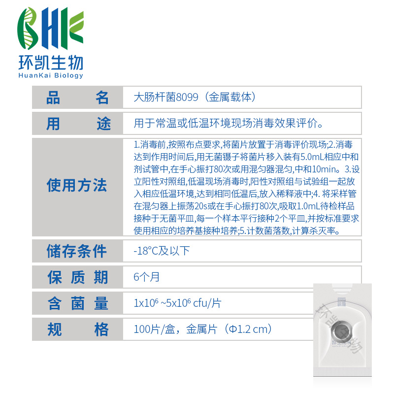 QSX002 大肠杆菌8099(金属载体) 1 × 106~5×106 cfu/片, 100片/盒 环凯